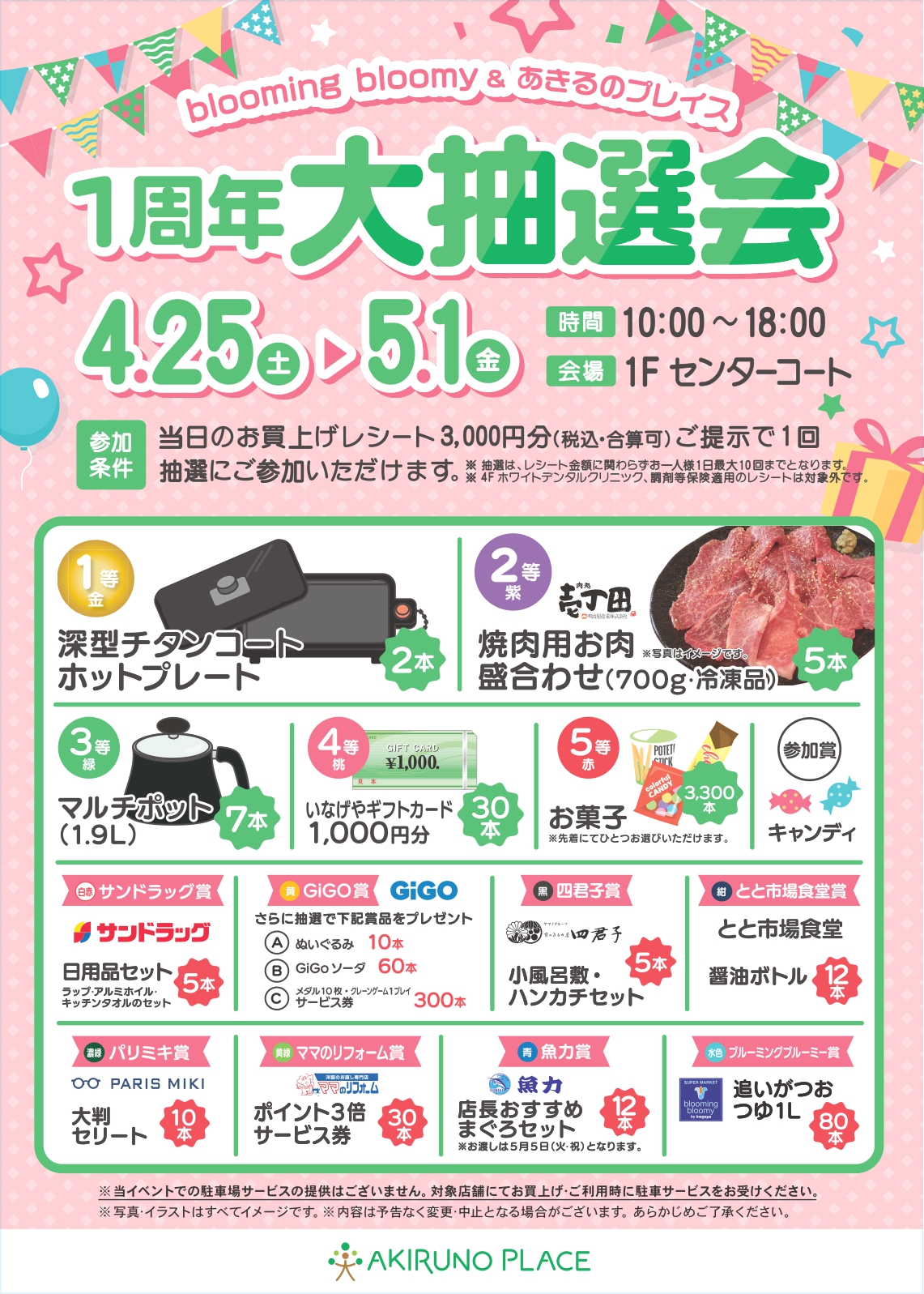 あきるのプレイスではblooming bloomy&あきるのプレイス1周年を記念して、